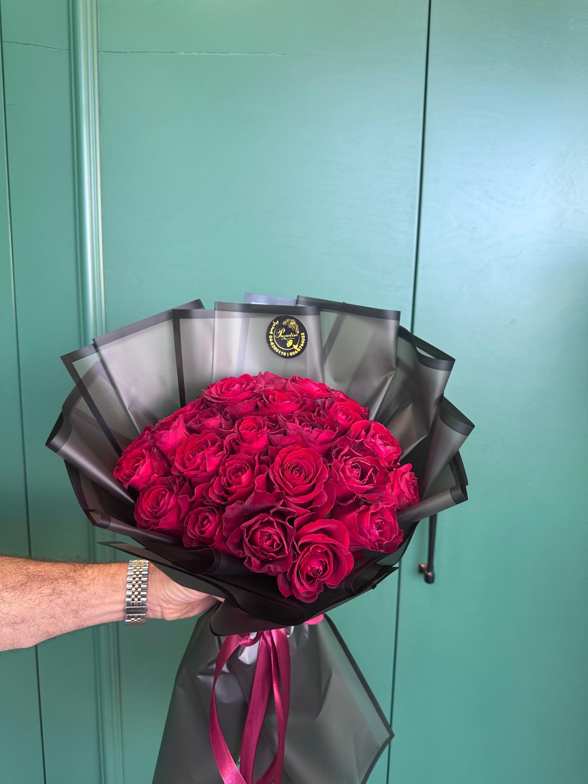 باقة ورد بلون احمر واسود