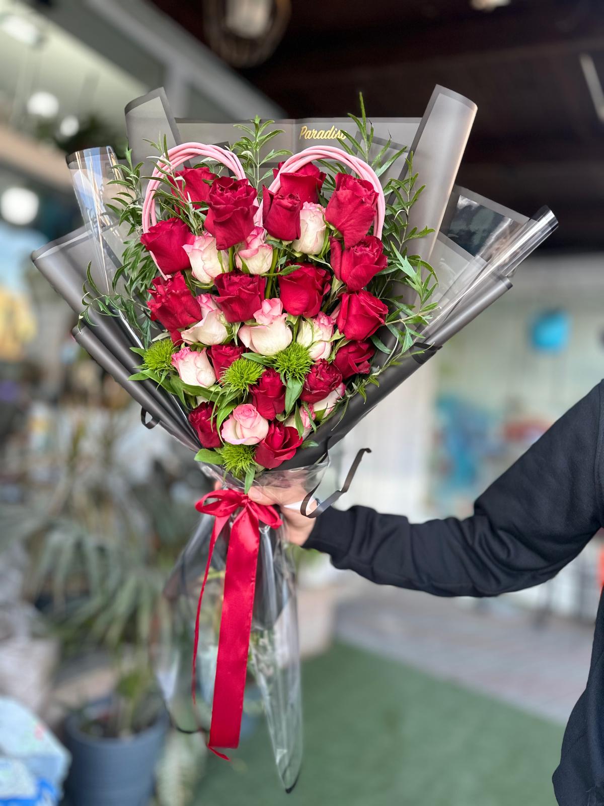 Home מתנות باقة ورد على شكل قلب لون اسود شفاف