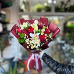 مجموعة هدايا مغطاة بصندوق مع ورد