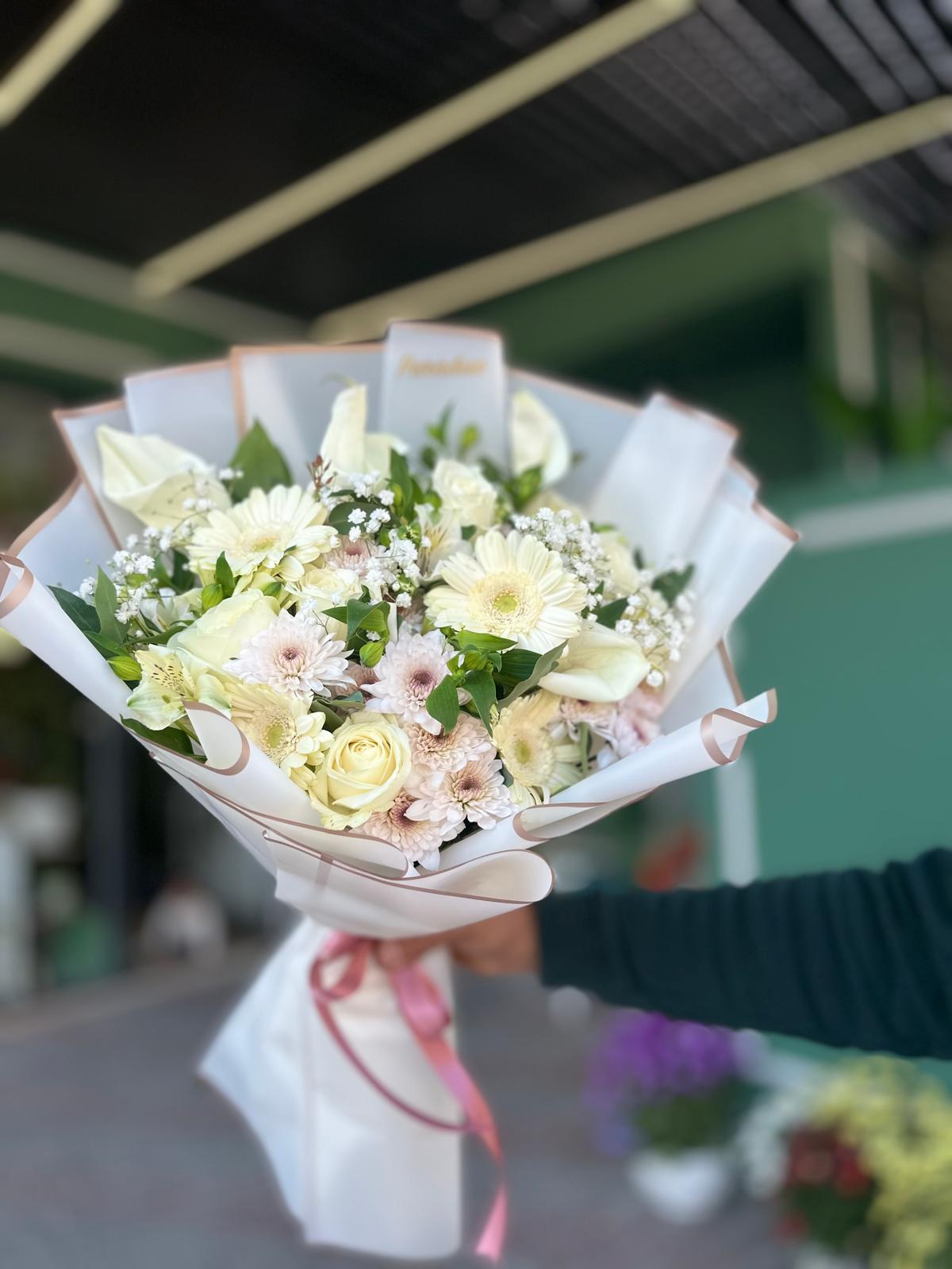 Home מתנות باقة ورد لون ابيض و ذهبي