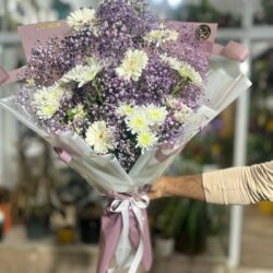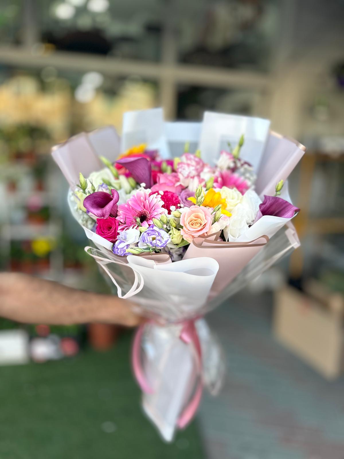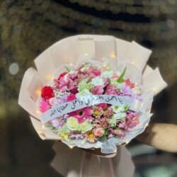 باقة ورد لون شفاف وبنفسجي ₪ 200.00