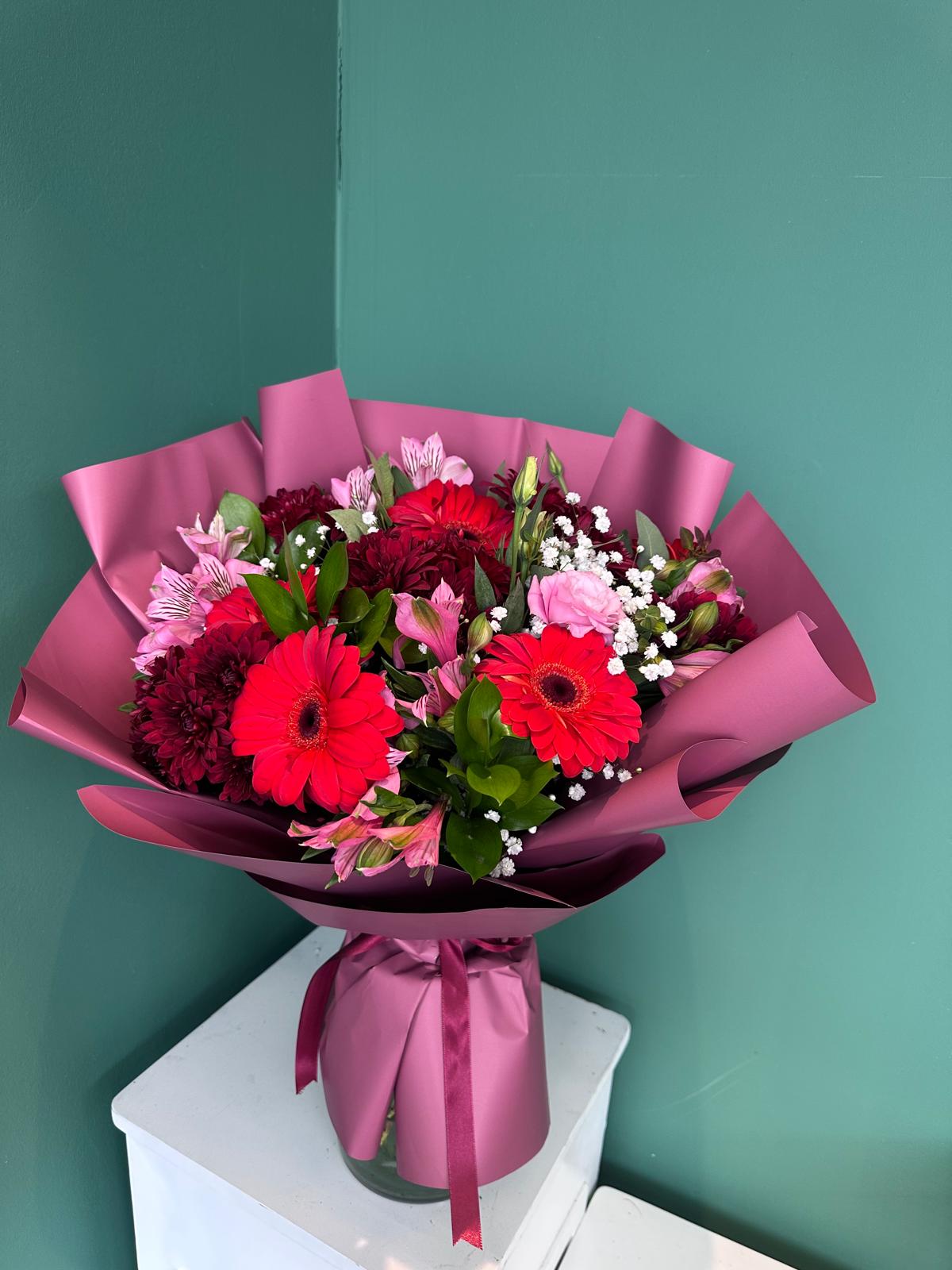 باقة ورد على شكل قلب لون ابيض واحمر ₪ 200.00