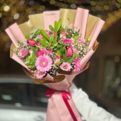 باقة ورد لون وردي وشفاف ₪ 200.00