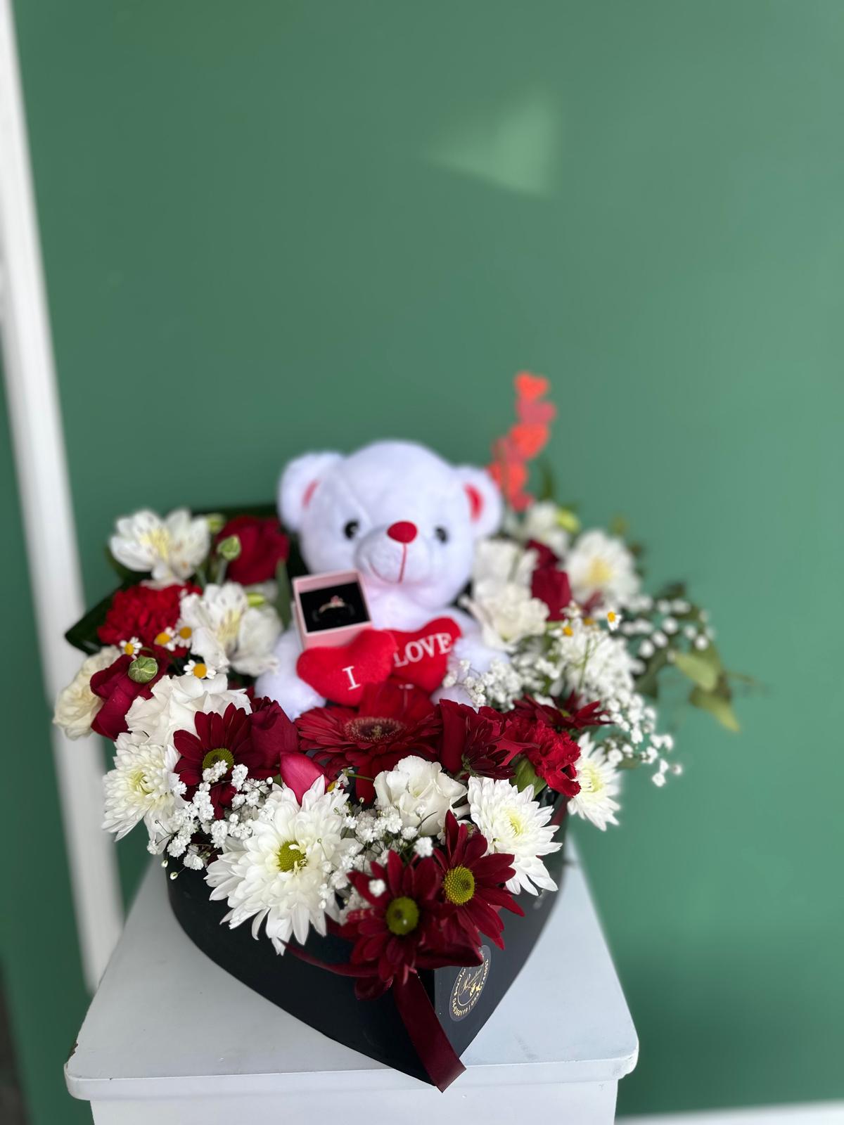 مجموعة هدايا بلون احمر مع دب صغير لون ابيض ₪ 200.00