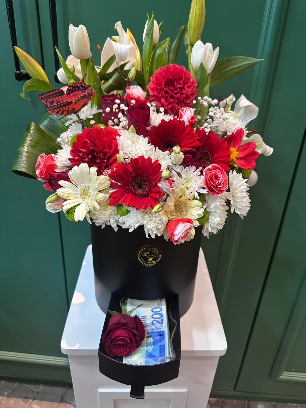 ضمة ورد هدية مع سلة وجزدان ₪ 250.00