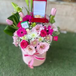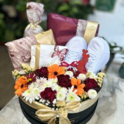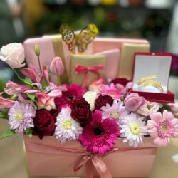 مجموعة هدايا مغطاة بصندوق مع ورد