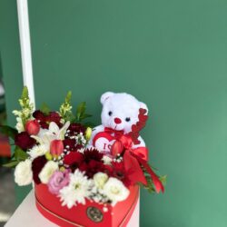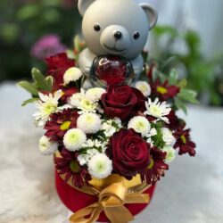 صندوق ورد مع دب لون ابيض ₪ 200.00
